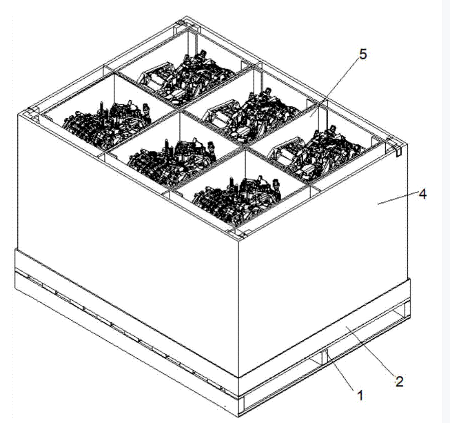 上面所述所有部件都需要精密设计,合理角度,尺寸,方向,用料,以及部件与部件之间的连接性能等。此技术方案中的一个技术方案具有如下优点或有益效果,完全满足重型货物的搬运装载条件;结构稳定、装载量大、耐用、环保、经济,较大满足了变速箱总成包装各种物流运输成本要求。